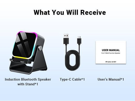 🎶📱 5-in-1 Wireless Induction Bluetooth Speaker with Adjustable Phone Stand