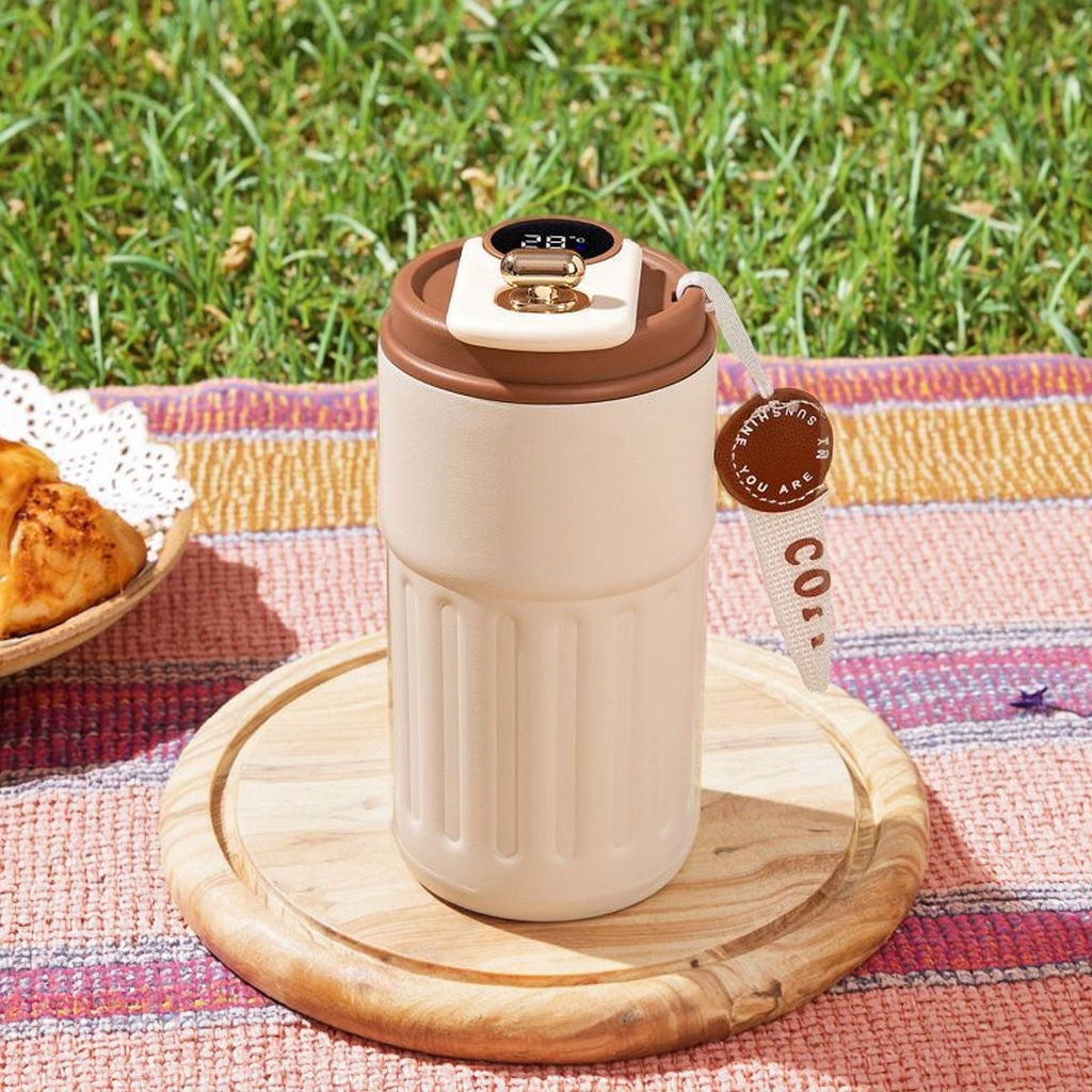 Introducing our portable coffee mug with temperature display, a must-have for coffee fans who appreciate precision and convenience.