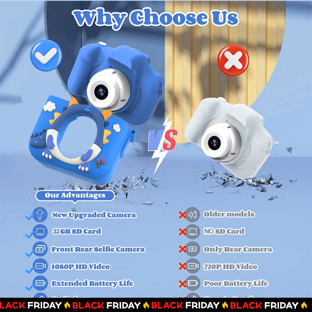 - The included 32GB memory card ensures ample space for storing countless photos and videos of your child's adventures