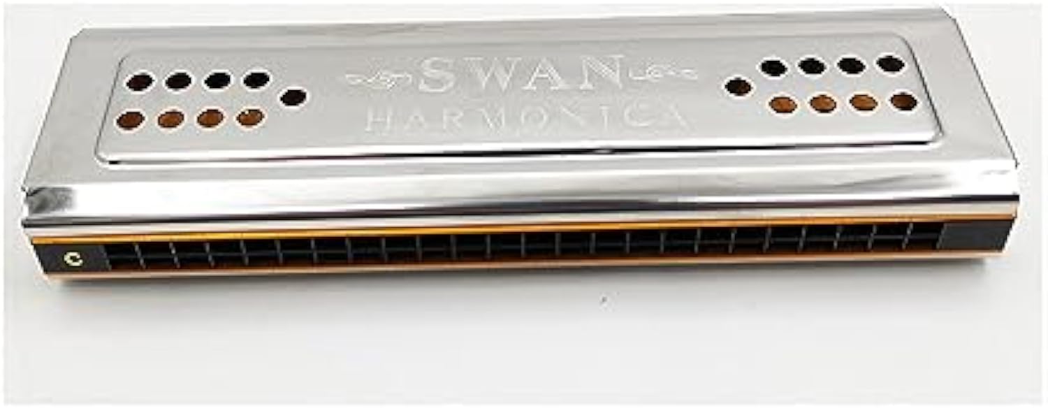 2-in-1 (dual-sided)design, has key of both C & G.Each side has 24 holes and 48 reeds.Cover is made of chrome-plating copper, good durability.Copper reeds and plate, come out with a pretty good sound.Padded box and a piece of cloth keep harmonica safe and clean.Ideal for music lovers.