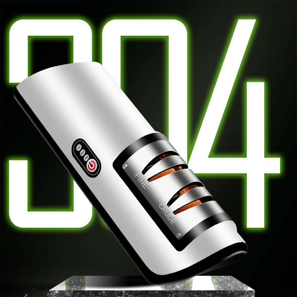 【Multifunctional Use】: Equipped for versatility, this electric knife sharpener caters to a wide range of kitchen knives, ensuring sharpness for every cut.【Durable Construction】: Crafted with a robust combination of metal and plastic, this sharpener is designed to withstand the test of time in any kitchen environment.【1200mAh Battery】: The inclusion of a potent 1200mAh battery allows for extended use, making it a go-to gadget for all sharpening needs without constant recharging.【Automatic Operation】: Streamlining knife maintenance, this electric sharpener's fully automatic operation removes the guesswork, providing precision sharpening with minimal effort.【Compact Design】: Its small footprint ensures it can be easily accommodated in any kitchen, saving space without sacrificing performance, making it an ideal household tool.