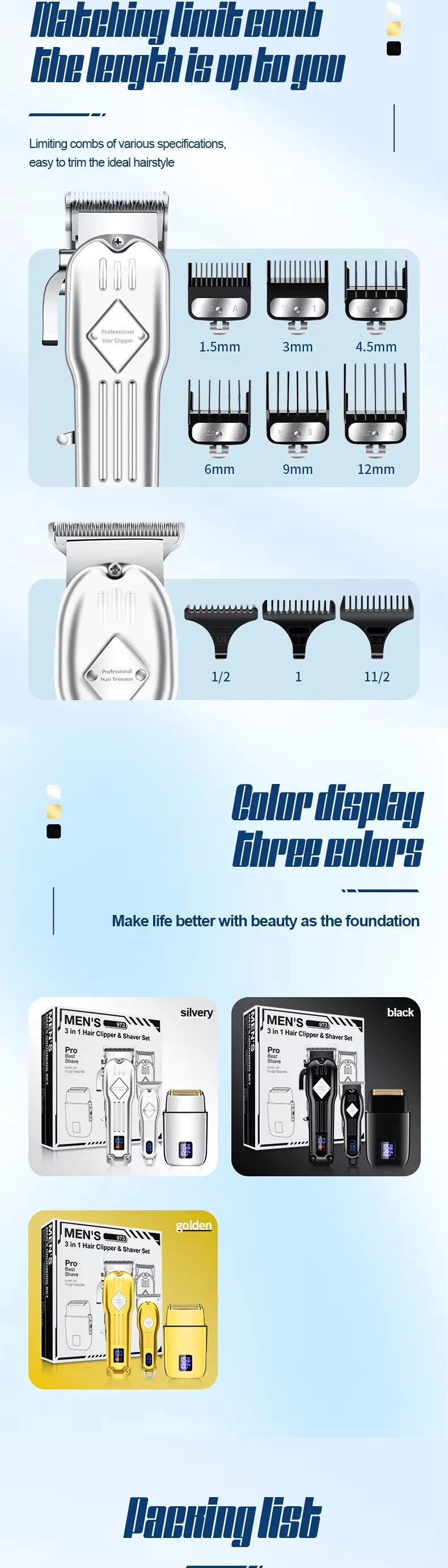 Three-in-one hair clipper-shaving set