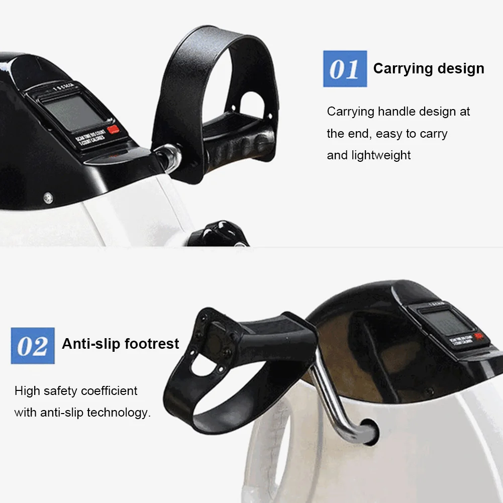 1. Non-Slip ABS Pedals: Engineered with high-quality ABS material, the anti-slip pedals of this mini exercise bike ensure maximum safety. The foot strap design enhances friction between your feet and the pedals, preventing slips and ensuring a secure workout experience.
