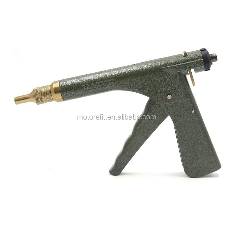 - To remove the gun and nozzle from the tire, push the button at the end of the gun to pull it out, then pull the gun and nozzle from the tire.